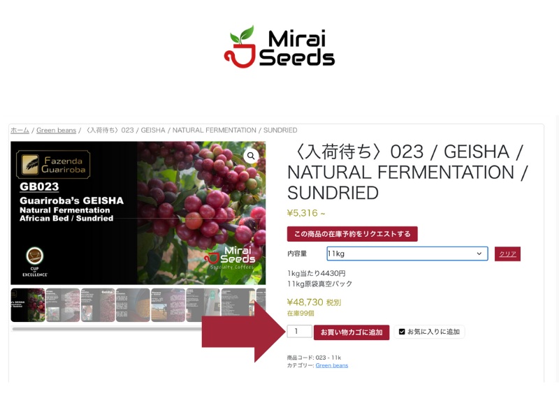 Por favor, selecione a quantidade de grãos de café que deseja comprar .